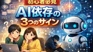 AIが便利で手放せなくなっていませんか?初心者が気づきにくいAI依存の3つのサインと、頼りすぎないための考え方をわかりやすく紹介します。