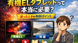 有機ELタブレットは本当に必要?違いがよく分からず迷っている人向けに、特徴・メリット・デメリットを整理しながら判断の考え方を解説します。用途別に、液晶でも十分なケースも含めてわかりやすくまとめました。