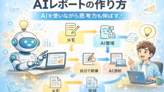 AIレポートの作り方を実体験ベースで解説。AIにどこまで任せてよいのか、ずるではないのかという疑問に答えながら、仕事を効率化しつつ思考力も伸ばすAI活用術を紹介します。
