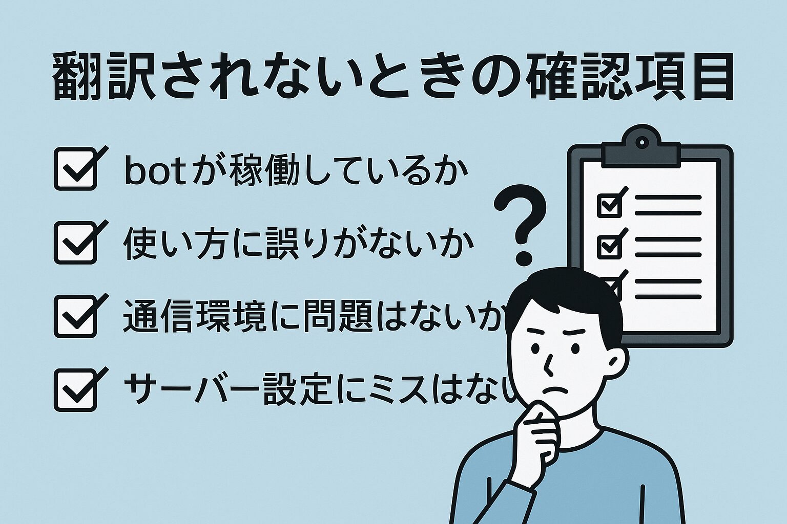 特に専門用語が多いサーバーでは、DeepLなど高精度翻訳サービスと連携できるbotを選ぶと安心です。