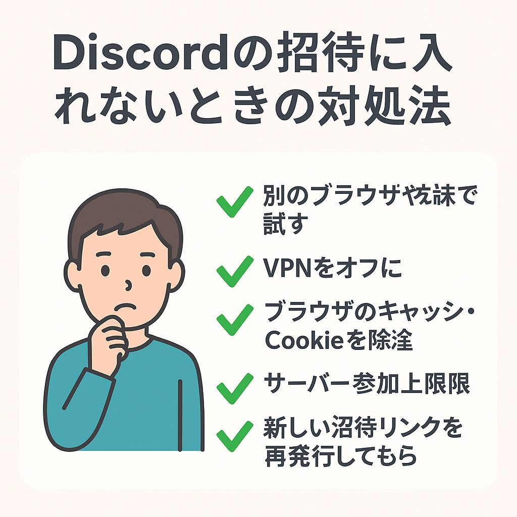 「招待リンクを押したのにサーバーに入れない…」そんなときも、落ち着いて対処すれば解決できることがほとんどです。