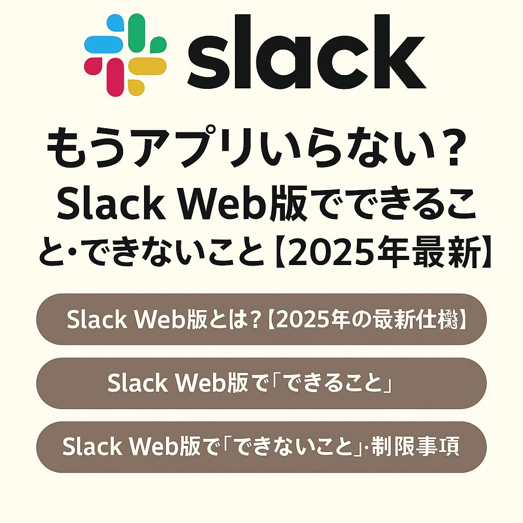 この記事では、Slack Web版でできること・できないことを整理しながら、「アプリに頼らないチームのかたち」を一緒に考えていきましょう。