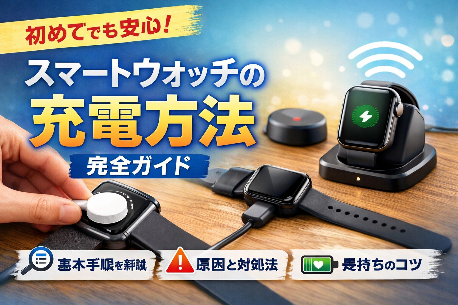 ※本記事は、2026年1月時点で公開されている各メーカーの公式情報および、第三者によるレビュー・技術情報をもとに構成しています。スマートウォッチの仕様や充電方法は、機種やアップデートによって変更される場合があります。最新かつ正確な情報については、必ず各メーカーの公式サイトをご確認ください。