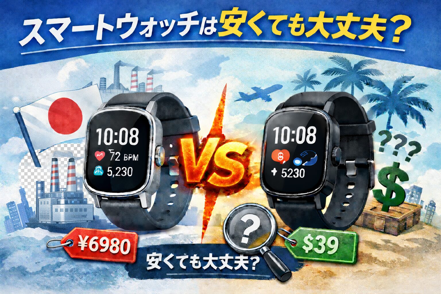 この記事では、日本製メーカーと海外製を比べながら、「安いけど怪しくない」スマートウォッチの考え方を、落ち着いて整理していきます。