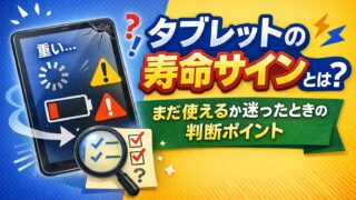 タブレットが遅い・充電がすぐ減る…それは寿命のサインかもしれません。本記事では「まだ使えるか迷ったとき」の判断ポイントを、初心者向けにやさしく解説。買い替えの目安や見逃しやすい変化を、実体験を交えて整理しています。