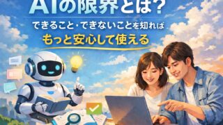 AI AIの限界とは?できること・できないことを知れば、もっと安心して使える AIの限界とは?文章作成や調べ物での「できること・できないこと」を具体例つきでやさしく整理。仕組みを知れば、生成AIはもっと安心して使えます。 2026.03.08 AI